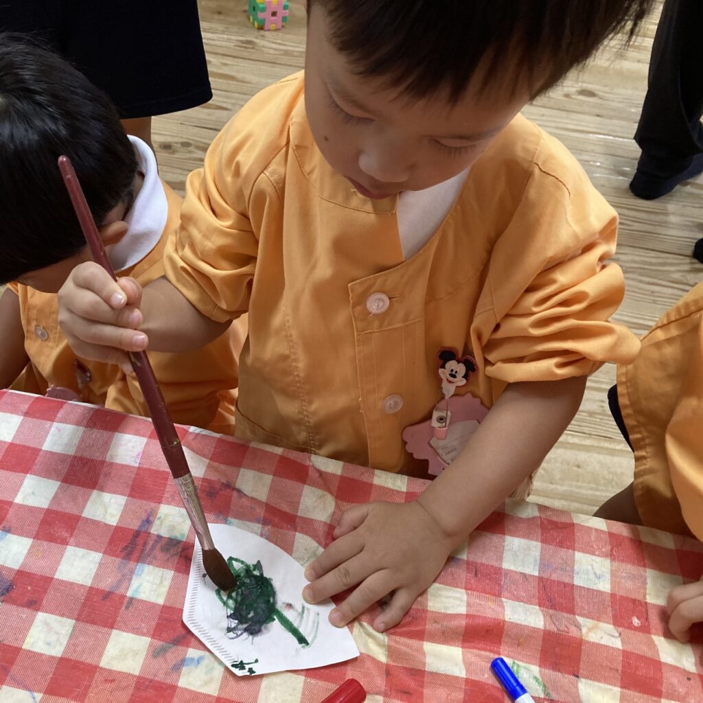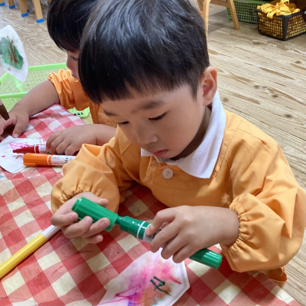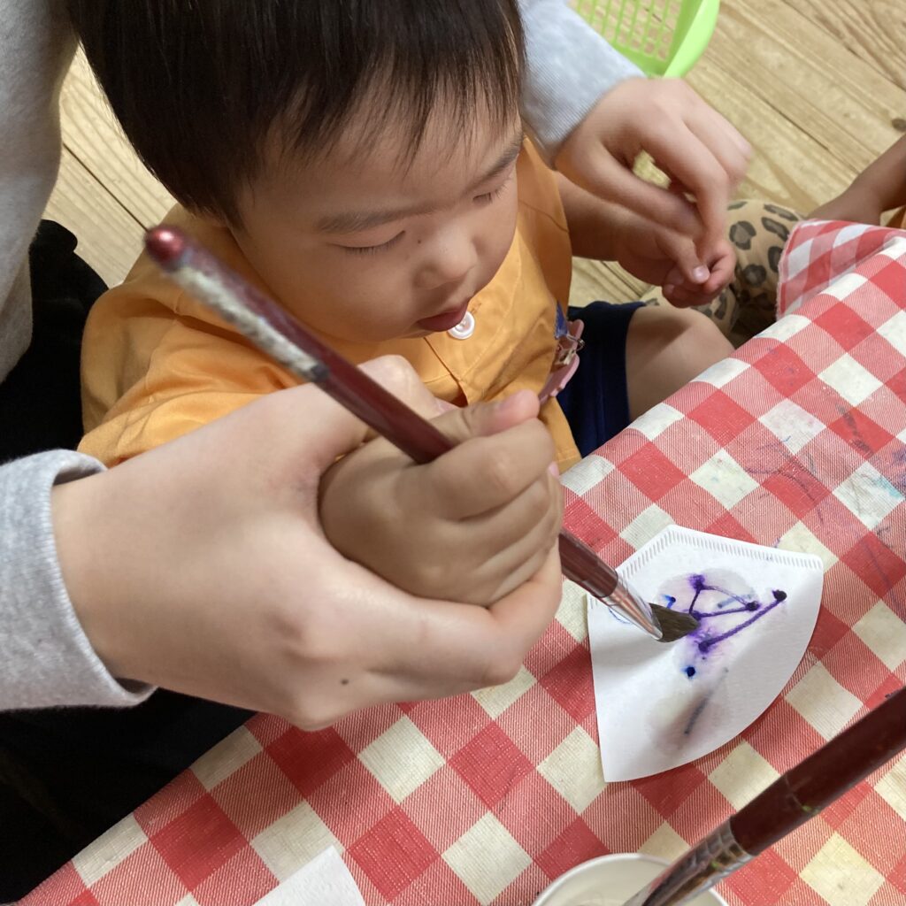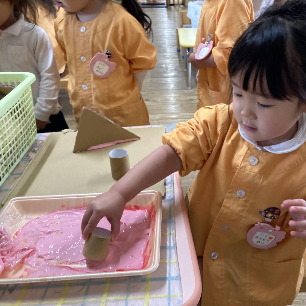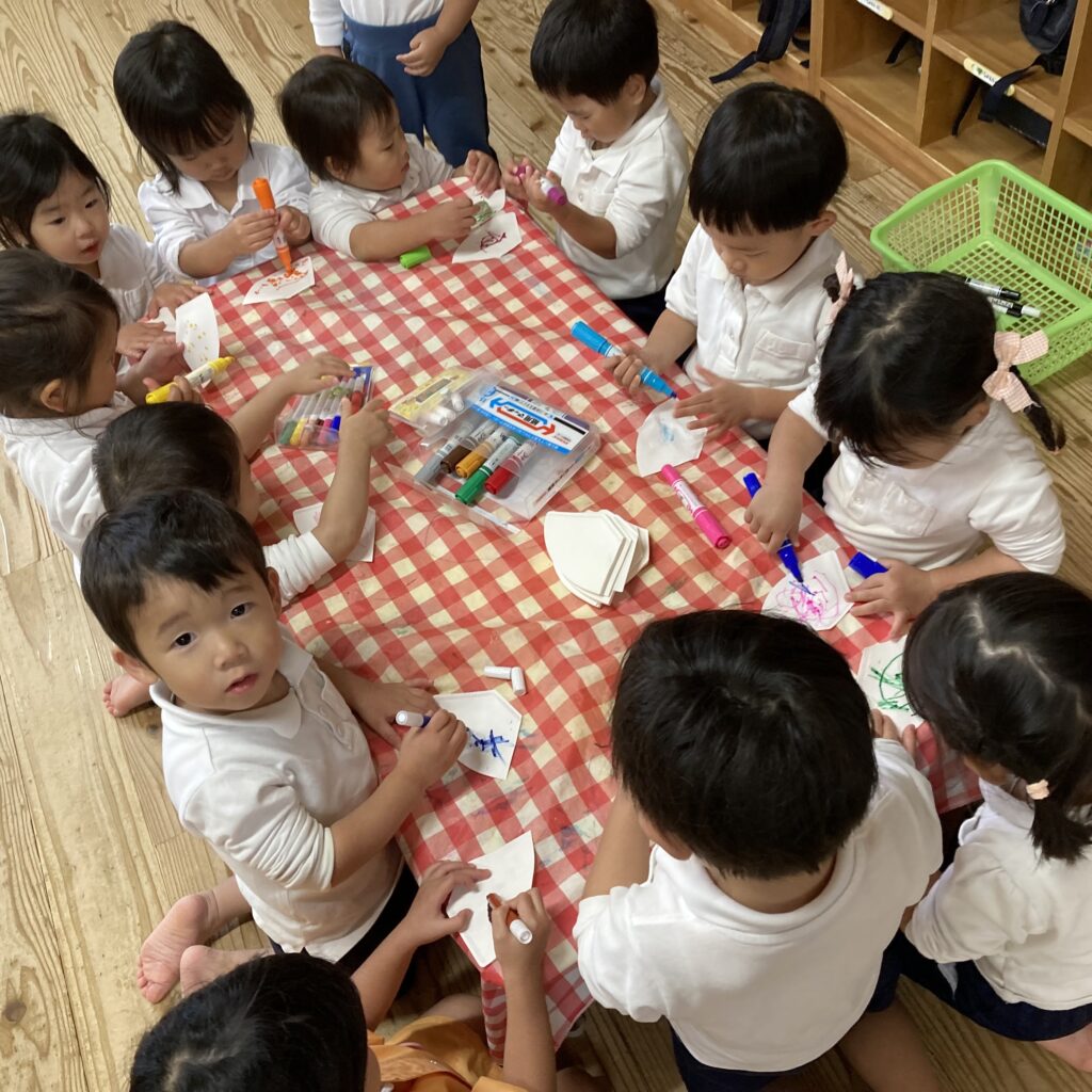 「僕は青がいい!」「ピンクとオレンジで塗ったよー!」など、自分の好きな色をこだわって選ぶ姿も見られ、子どもたちは楽しみながら活動に取り組んでいました。