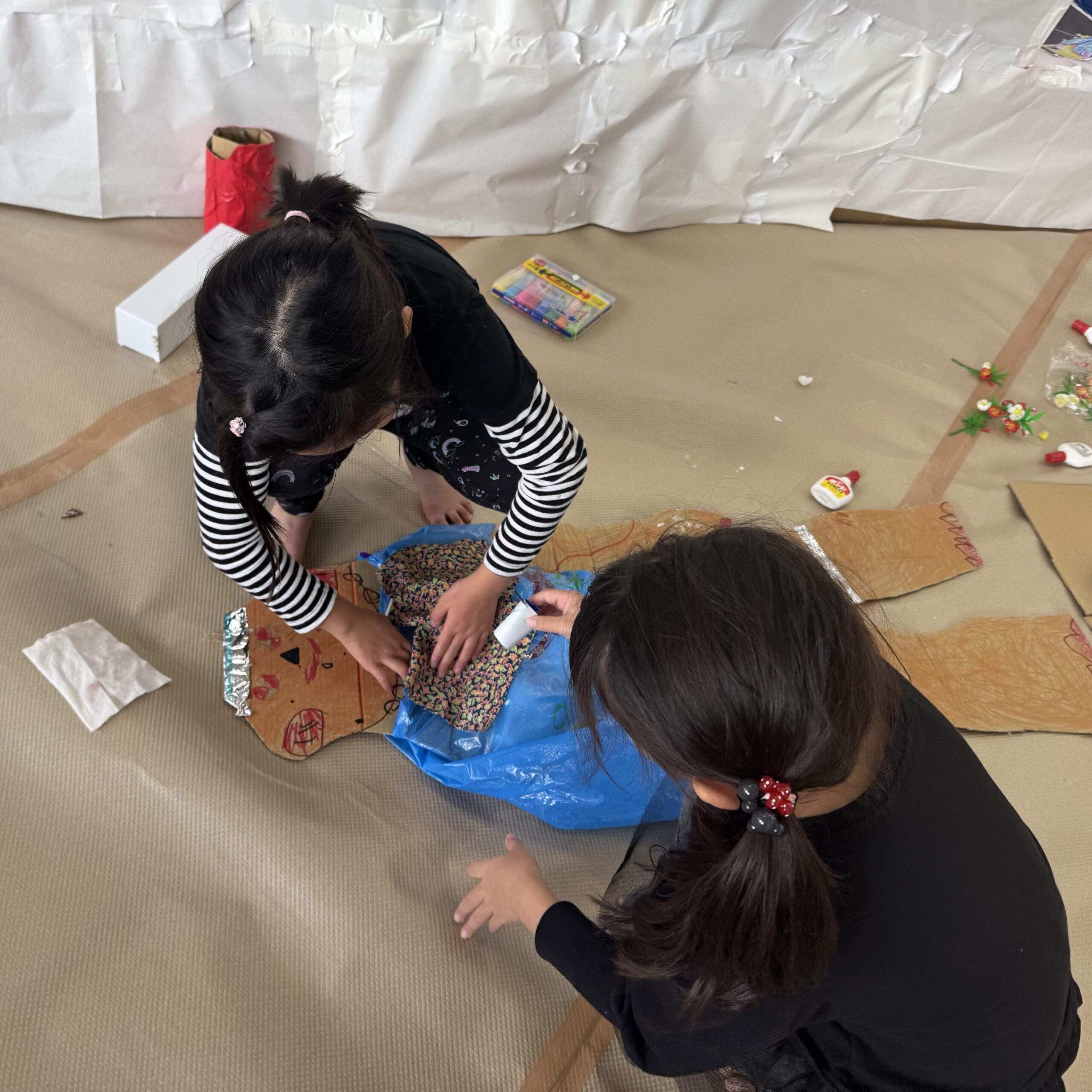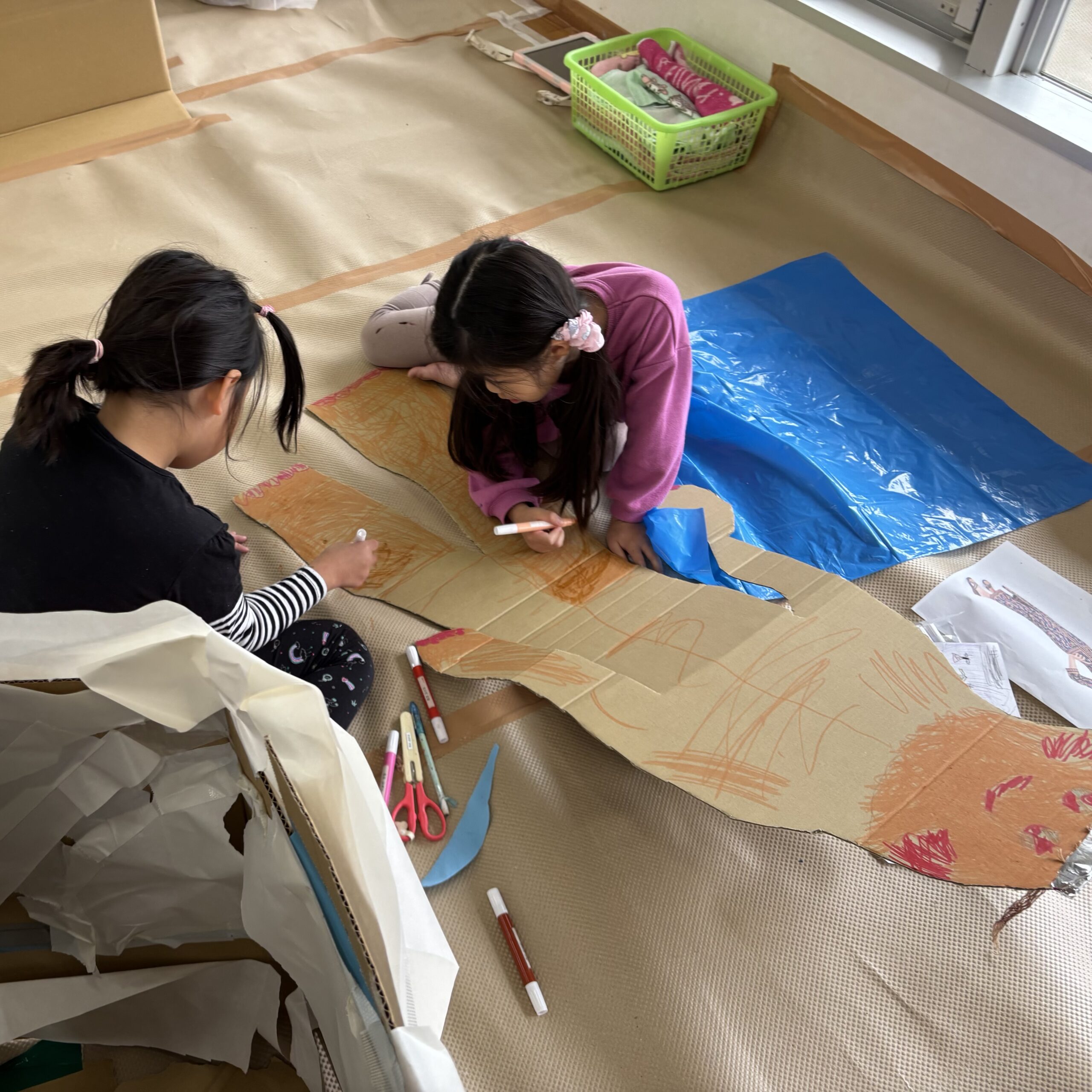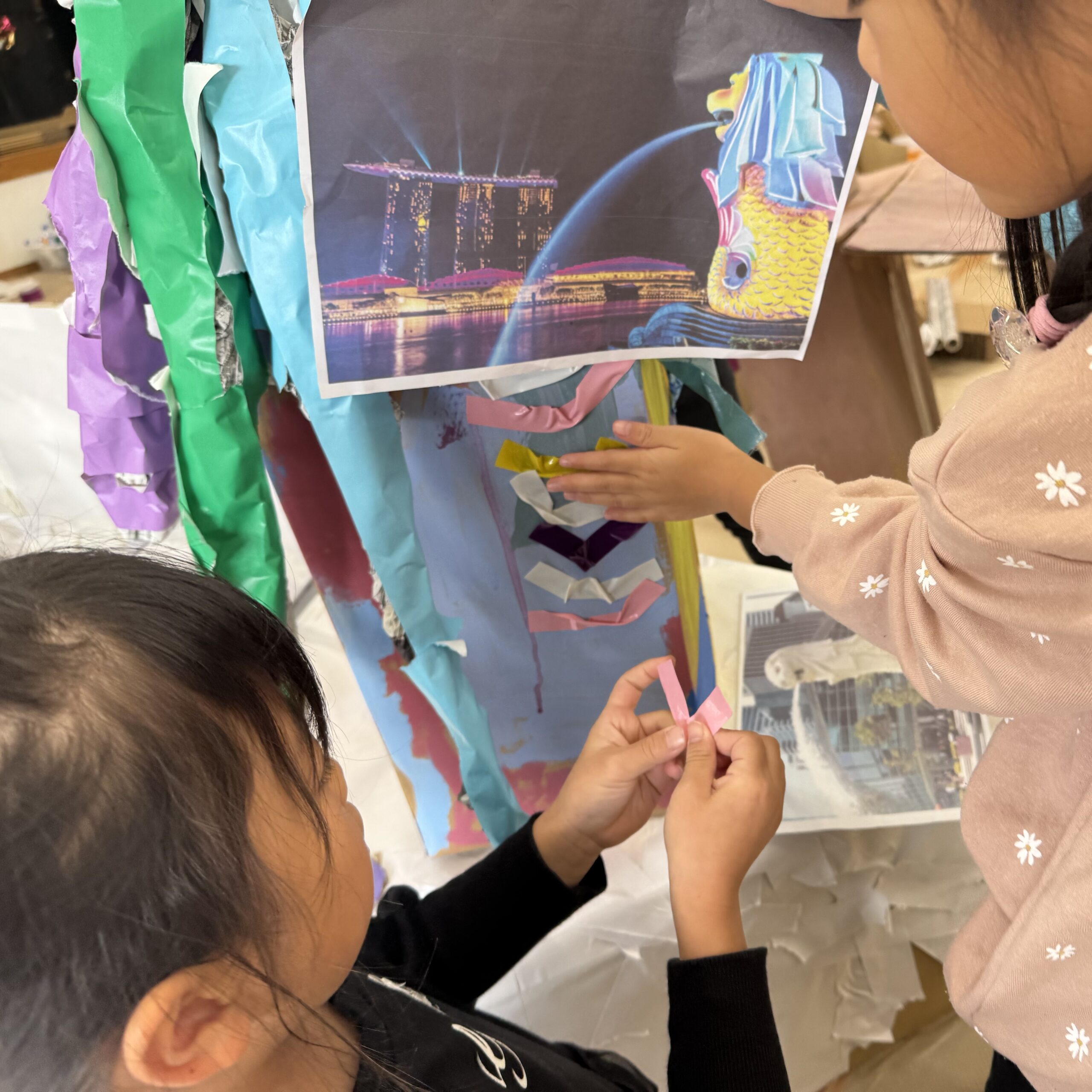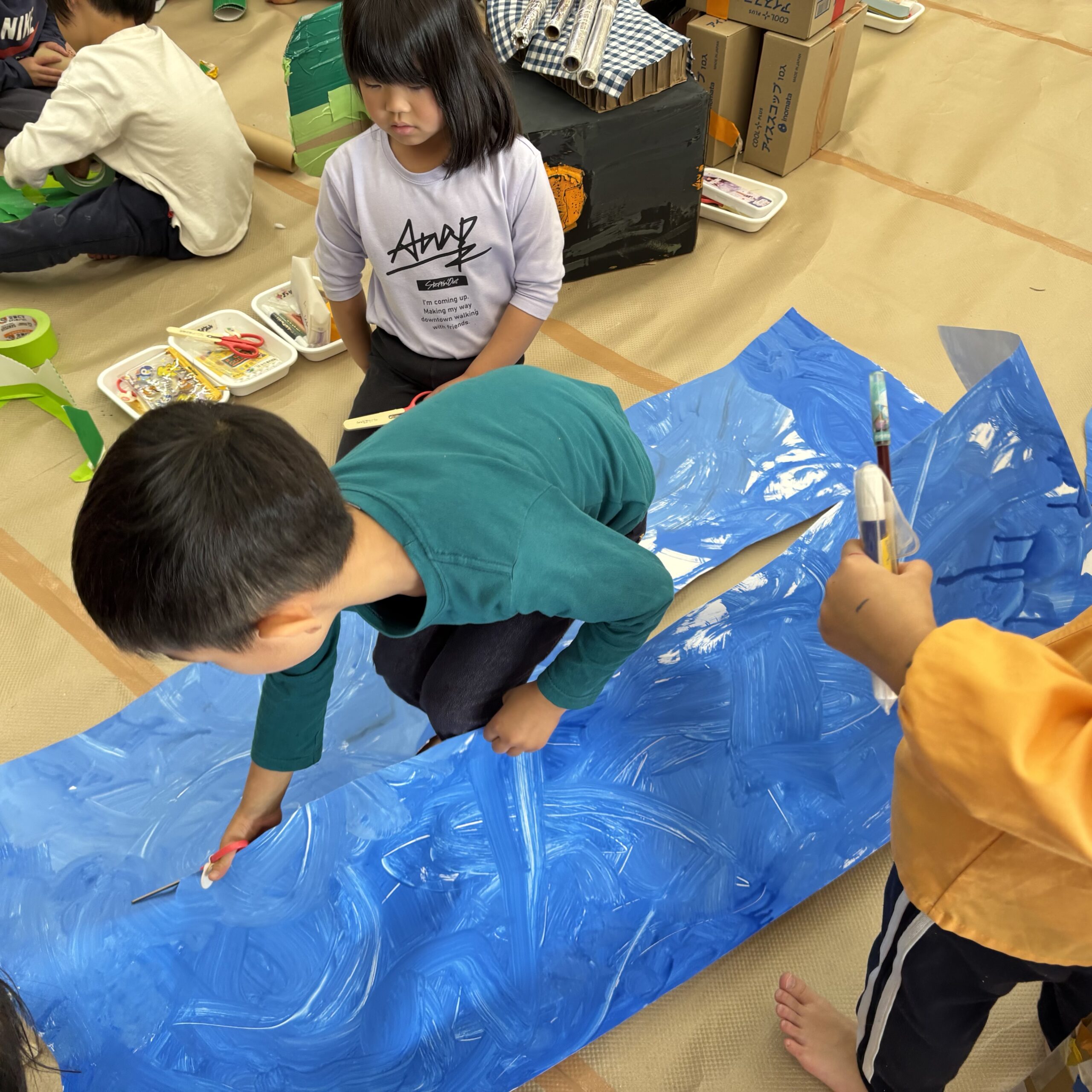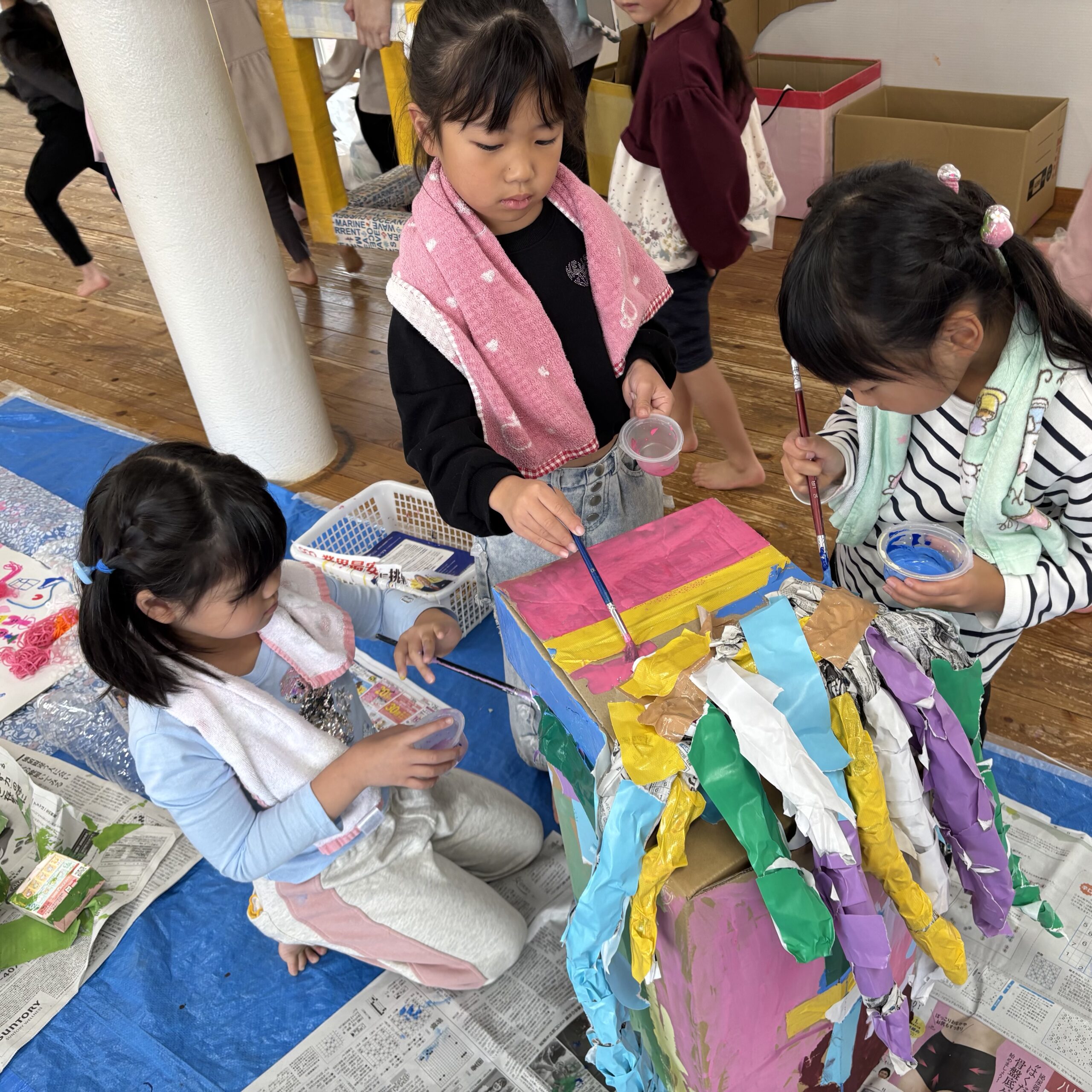 調べている中で、「ロイヤルカリビアンクルーザー」という豪華客船が出航していることを知った子どもたち。船の上でウォータスライダーが出来ることを知ると「楽しそう!作ってみたい!」と大盛り上がり⭐︎みんなで乗れる大きな船をメインに、有名な“マーライオン”や民族衣装の“ケバヤ”を着た船長も加えて、シンガポールの世界が完成しました!ウォータースライダーでは、実際にどんぐりを転がして遊ぶこともできますよ!ぜひ、遊んでみてください⭐︎ただし、プールまでたどり着く可能性は、五分五分です(笑)